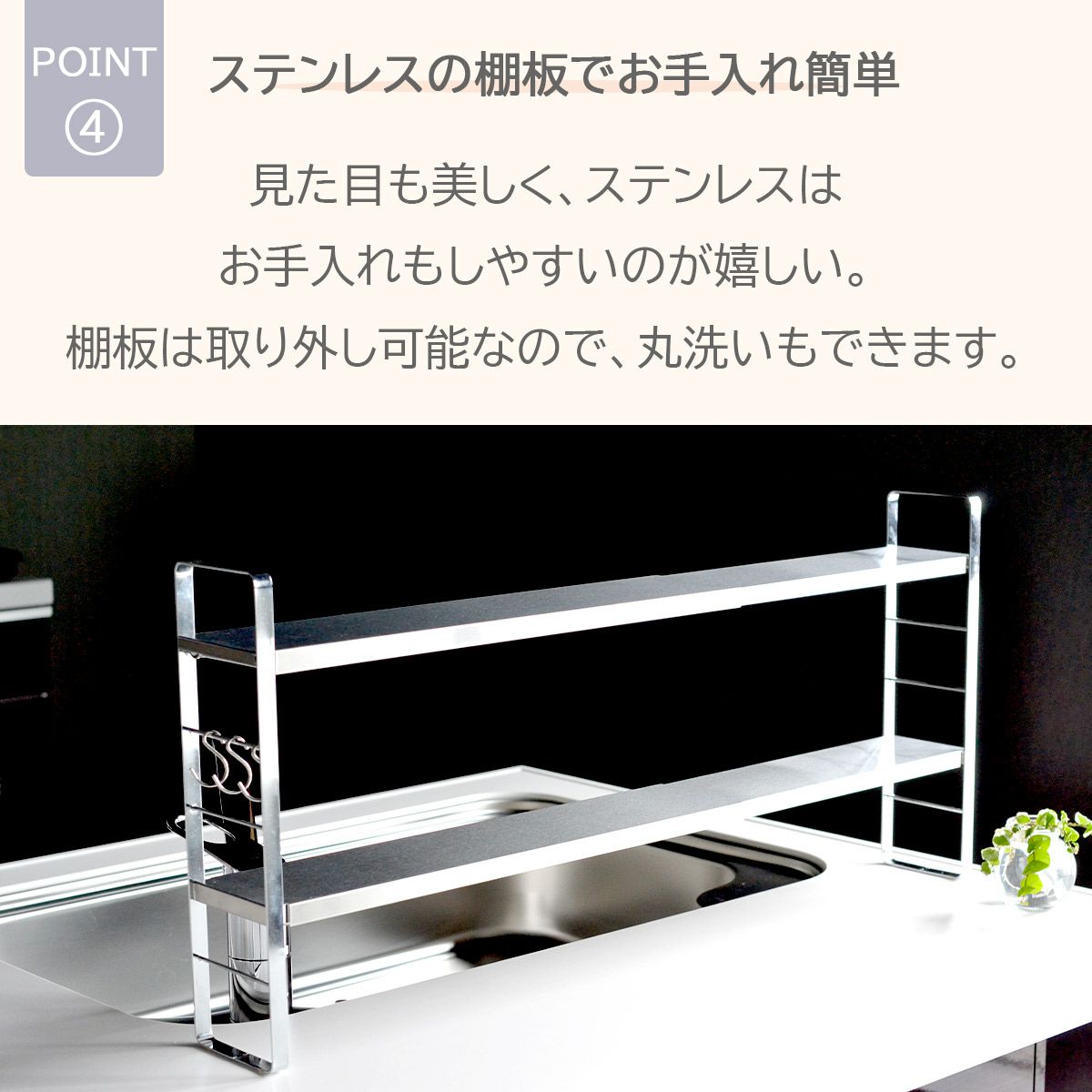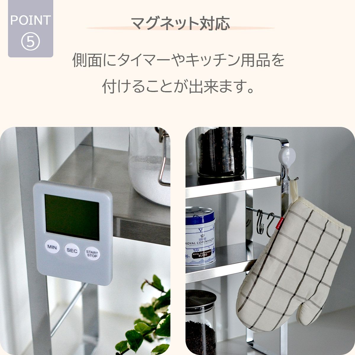ステンレス製でおしゃれなデザインは、キッチンを明るく演出し、料理の準備を楽しくしてくれます。