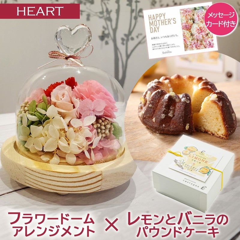 <母の日メッセージカード付 フラワードームアレンジメント×レモンとバニラのパウンドケーキセットAの特長>