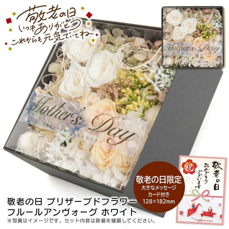 <敬老の日 プリザーブドフラワー フルールアンヴォーグ ホワイトの特長>