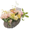 バイヤー厳選の鮮度抜群のお花をバスケットいっぱいにつめこみましたお花がこぼれ出るようなデザインです