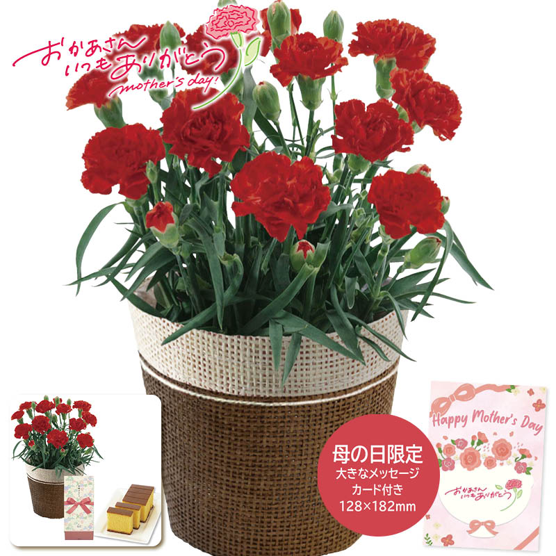 <母の日 ギフト 2026 母の日 カーネーションレッド4号&長崎かすてらセットの特長>