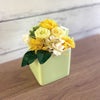 1.華やかなイエローで心を明るく2.陶器の花器が上品な印象を演出3.特別な日にぴったりな癒しのギフト