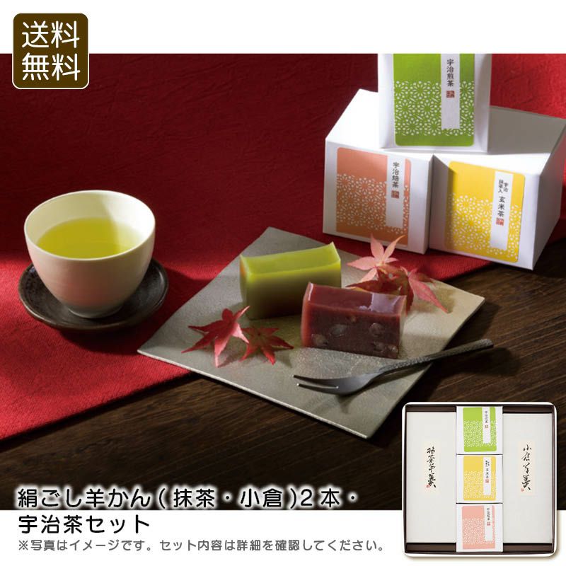 <絹ごし羊かん(抹茶・小倉)2本・宇治茶セットの特長>