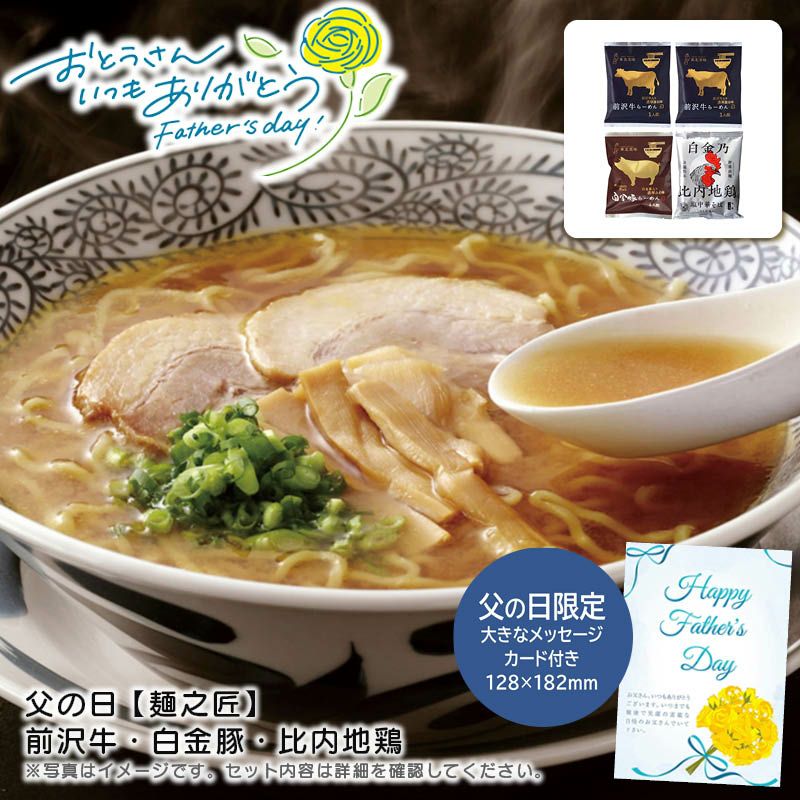 <父の日 【麺之匠】 前沢牛・白金豚・比内地鶏の特長>