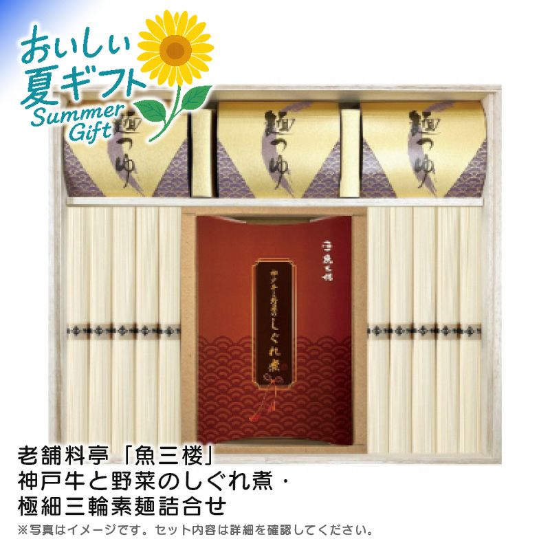 特別な日の夕食や、家族や友人とのおもてなしにぴったりな一品です。老舗料亭「魚三楼」の神戸牛と野菜のしぐれ煮は、贅沢な味わいで、極細の三輪素麺と一緒に楽しむことで、モチモチとした食感とコシのある素麺が、しぐれ煮の旨味を引き立てます。和食のディナーやパーティーでの料理に最適で、日常の食卓を特別なものに変えてくれます。お祝いの席やリラックスしたい時にも、ぜひご利用ください。高級感あふれるこの詰合せは、贈り物にも最適で、喜ばれること間違いなしです。