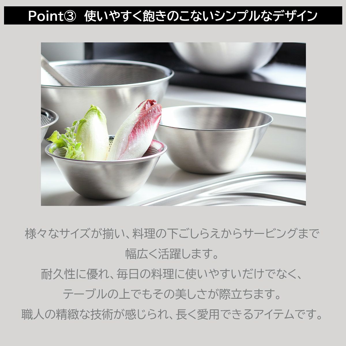 柳宗理のセットアイテムは、調和のとれたデザインでシリーズ使いが可能。ギフトにも選ばれる美しさと、日常で活躍する実用性を兼ね備えています。まとめて揃えることで、より快適なキッチンライフを実現します。