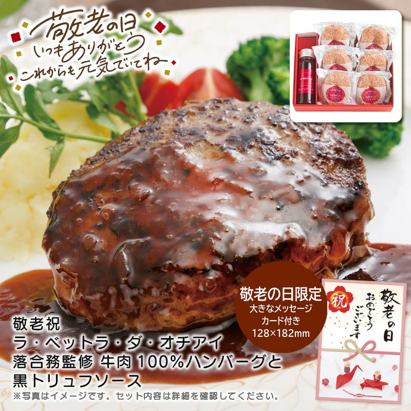 敬老の日 プレゼント ラ・ベットラ・ダ・オチアイ 落合務監修 牛肉100%ハンバーグと黒トリュフソース