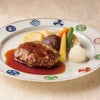 浅草今半のこだわりが詰まった逸品で、柔らかくジューシーなハンバーグが、和風ソースとともに風味豊かに仕上がっています。