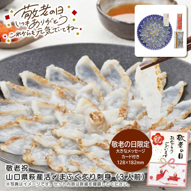 <敬老の日 プレゼント 山口県萩産活〆まふく炙り刺身(3人前)の特長>