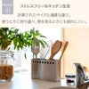 キッチンでの料理をもっと快適にするための便利なアイテム、キッチンツールスタンド。お玉やヘラなどの調理道具をすっきり整理できるので、スペースを有効活用できます。シンプルでスタイリッシュなデザインは、どんなキッチンにもマッチし、インテリアとしてもおしゃれです。ステンレス製で丸洗いも簡単、清掃も楽々。滑り止め機能が付いているので、安定感も抜群。料理の時間を短縮し、使いやすさを追求したこのスタンドで、毎日の料理をもっと楽しく、便利にしましょう。