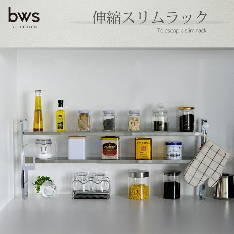 横幅の調節が可能なので、調味料や調理器具をすっきり整理できます。