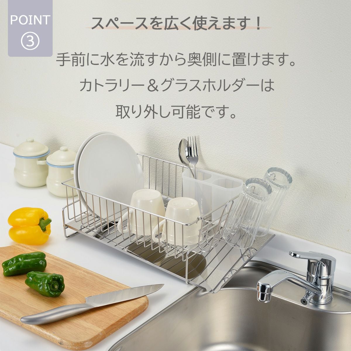 斜めに流れる1段水切り 右置き用