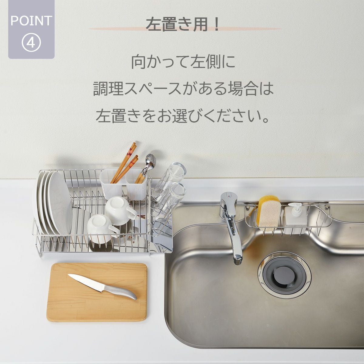斜めに流れる1段水切り 左置き用