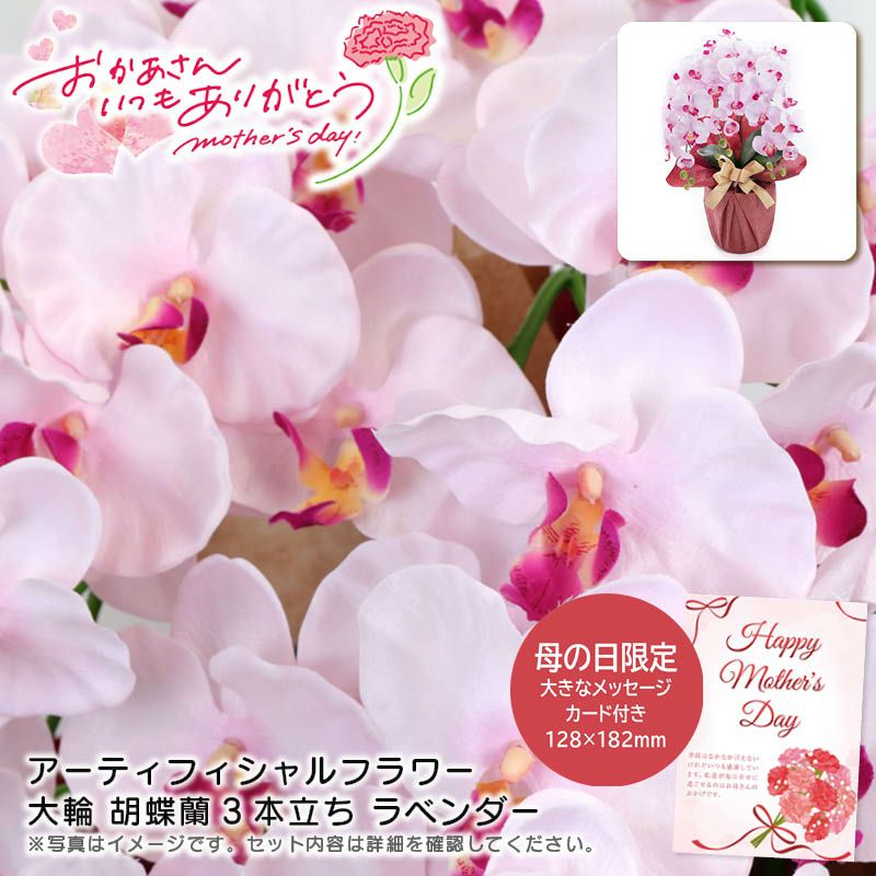 <母の日 アーティフィシャルフラワー大輪 胡蝶蘭3本立ち ラベンダーの特長>