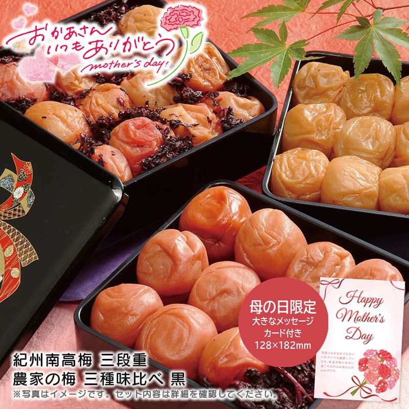 <母の日 紀州南高梅 三段重 農家の梅 三種味比べ 黒の特長>