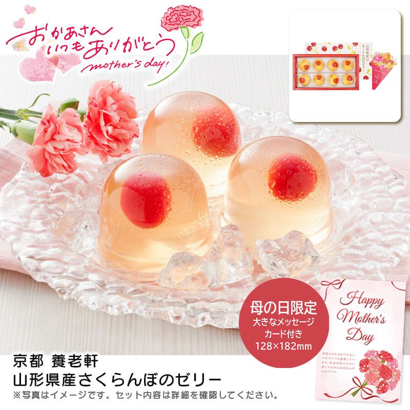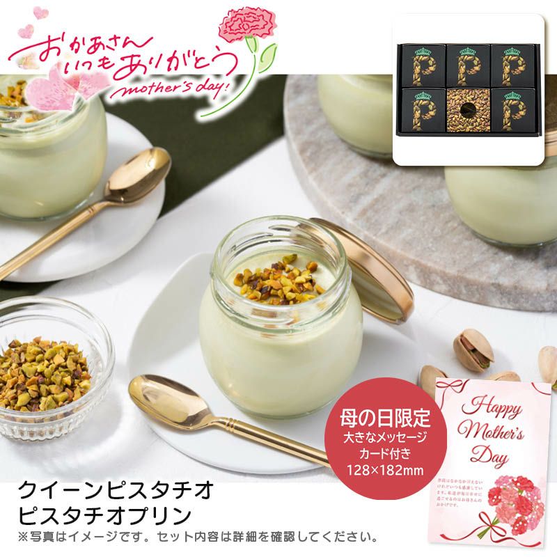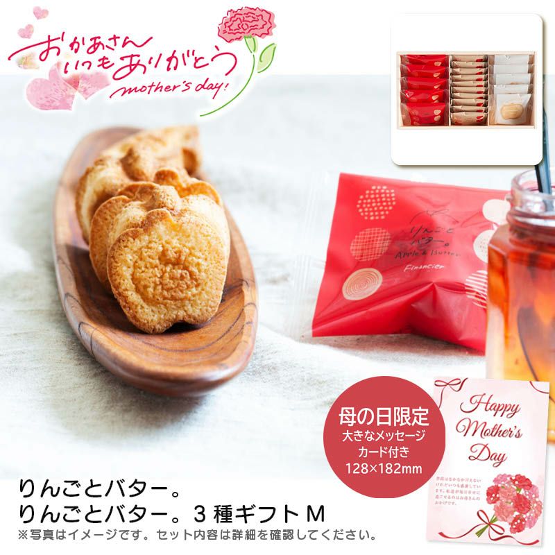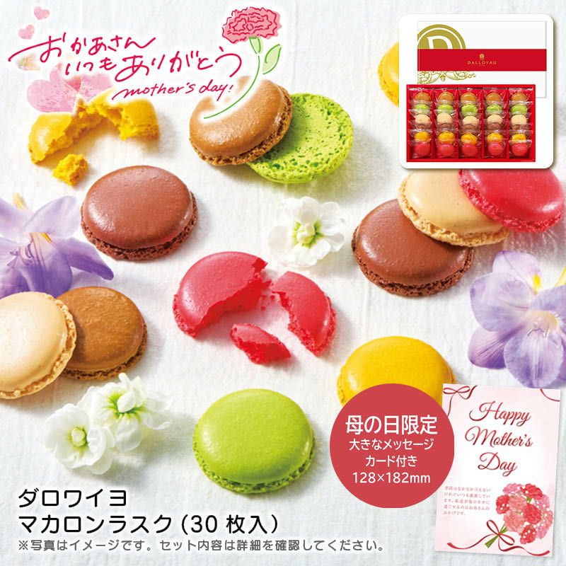 母の日のプレゼントとして、甘いもの好きなお母さんへおすすめの商品をご用意いたしました。母の日用にメッセージカードをセットしてお届けします。