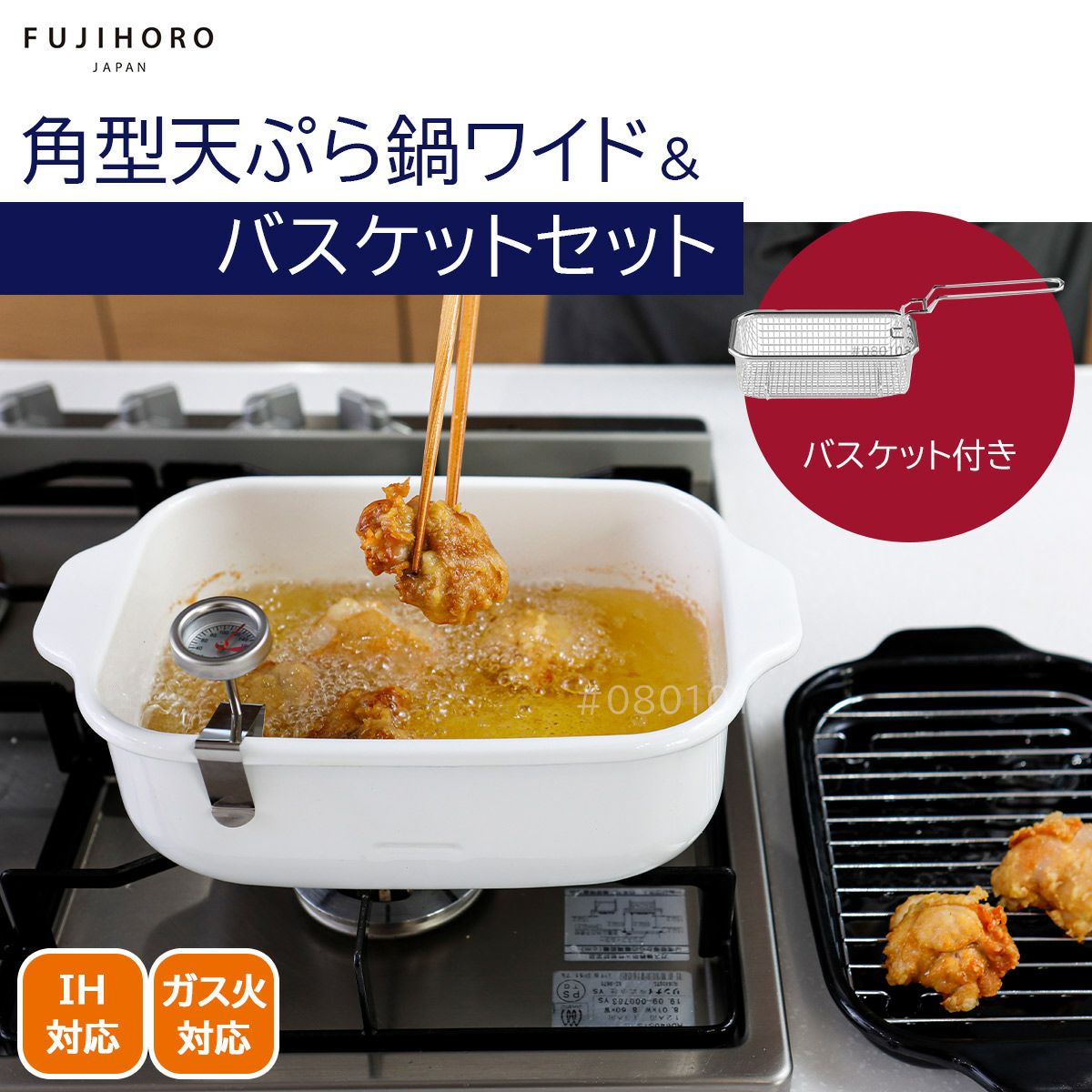 <富士ホーロー 角型天ぷら鍋ワイド&フライヤーバスケットセットの特長>