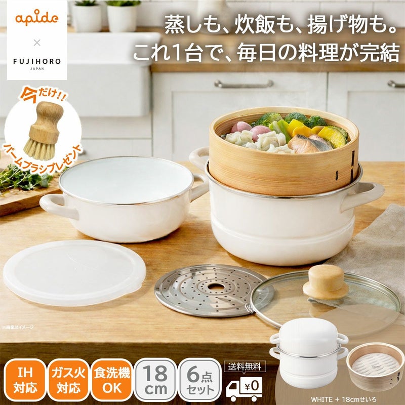<マルチホーロー鍋 ハットポット 蒸しプレート+せいろ付き 18cm ホワイトの特長>