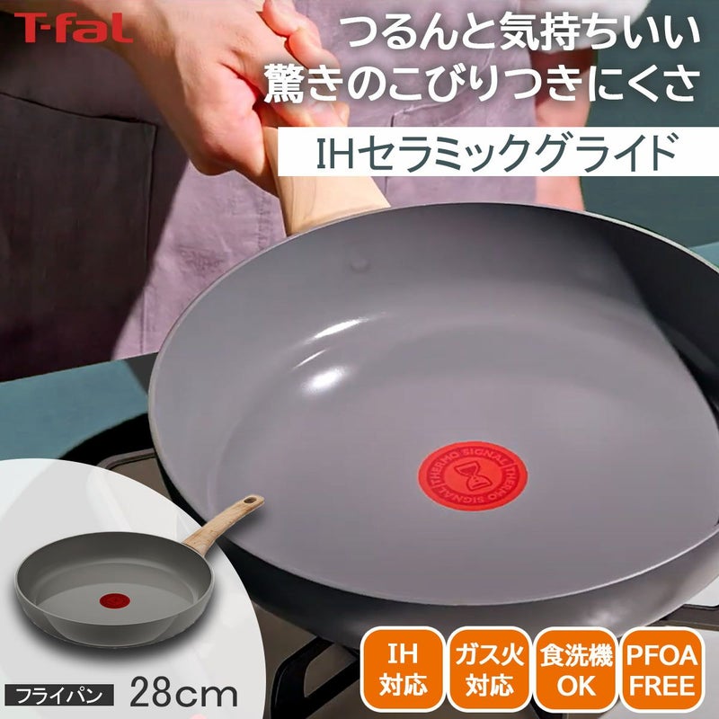 <T-fal IHセラミックグライド アースグレー フライパン28cmの特長>