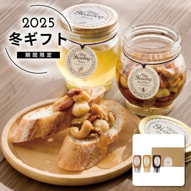 内容からだに優しいアカシアはちみつ300g・はちみつとピーナッツでつくったピーナッツハニー250g・はちみつとカカオでつくったチョコレートハニー280g各1個