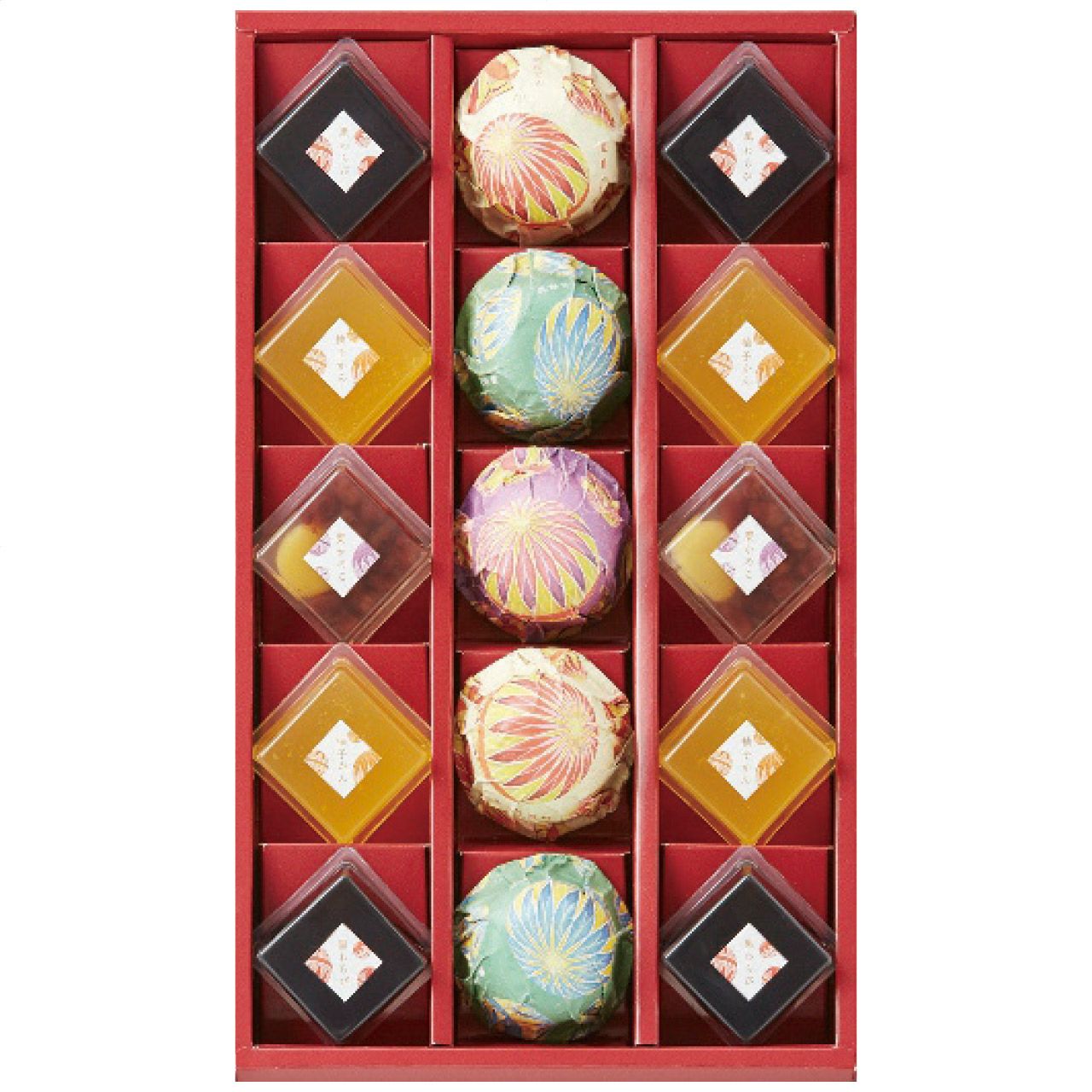 内容羊羹62g(小豆1個・抹茶2個)・豆乳ぷりん59g・栗かのこ52g各2個・黒わらび50g・柚子かん51g各4個