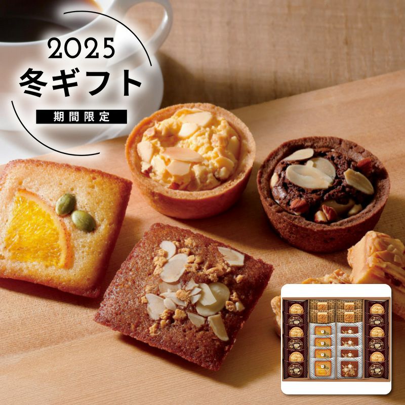 内容フィナンシェ(オレンジ・キャラメルアーモンド)・フロランタン各4個・タルト(ブラウニー・ホワイトブラウニー各6個)