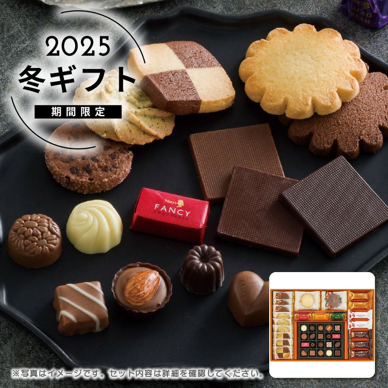 内容ファンシーチョコレート20個・ミルフィーユ(アーモンド・ストロベリー各2個・チョコレート3個)・クッキーコレクション(チョコレートチップ・ダージリンティー・ジャンドゥヤ&ホワイト各3枚・バター・カカオ各2枚)・プレーンチョコレート(ミルク・スイート・ビター各2枚)
