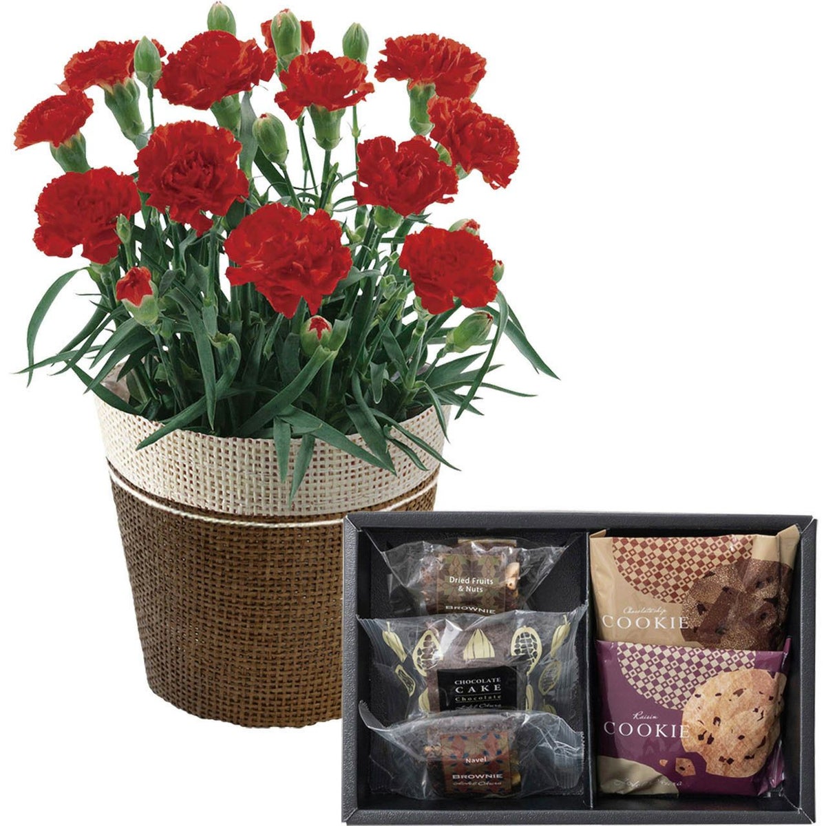 母の日 カーネーションレッド4号&ホテルオークラ ケーキ&ブラウニー&クッキーアソート セット