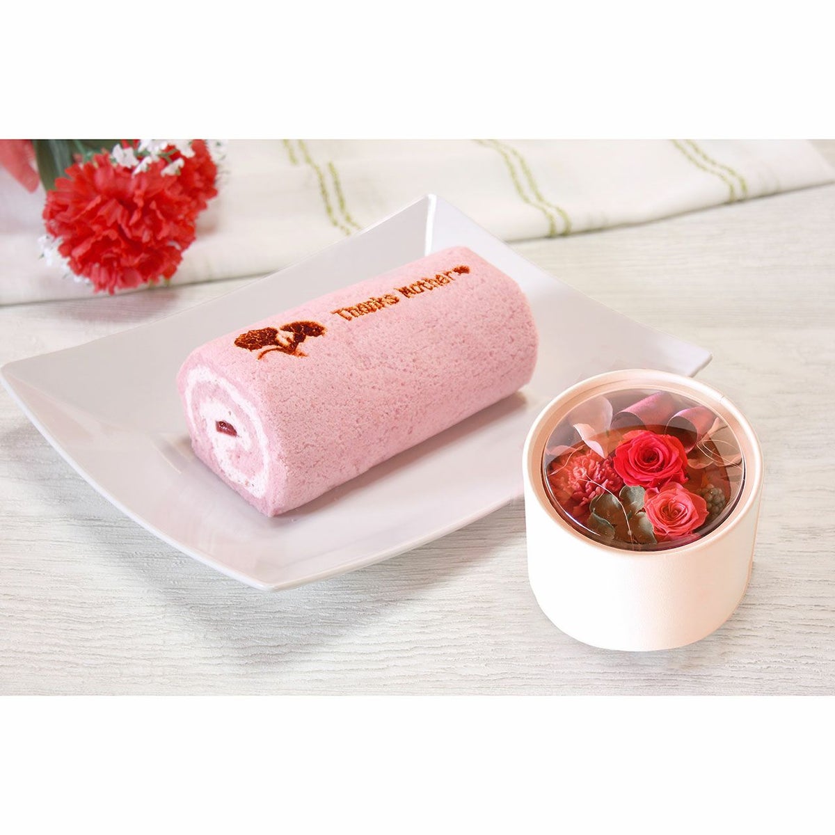 母の日 完熟いちごロール&プリザーブドフラワー