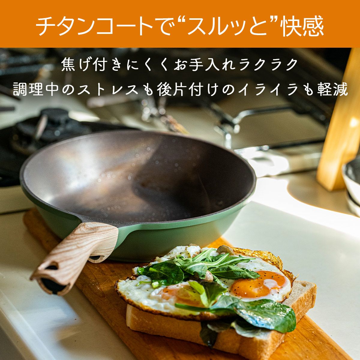 軽量チタンコーティングフライパン26cm