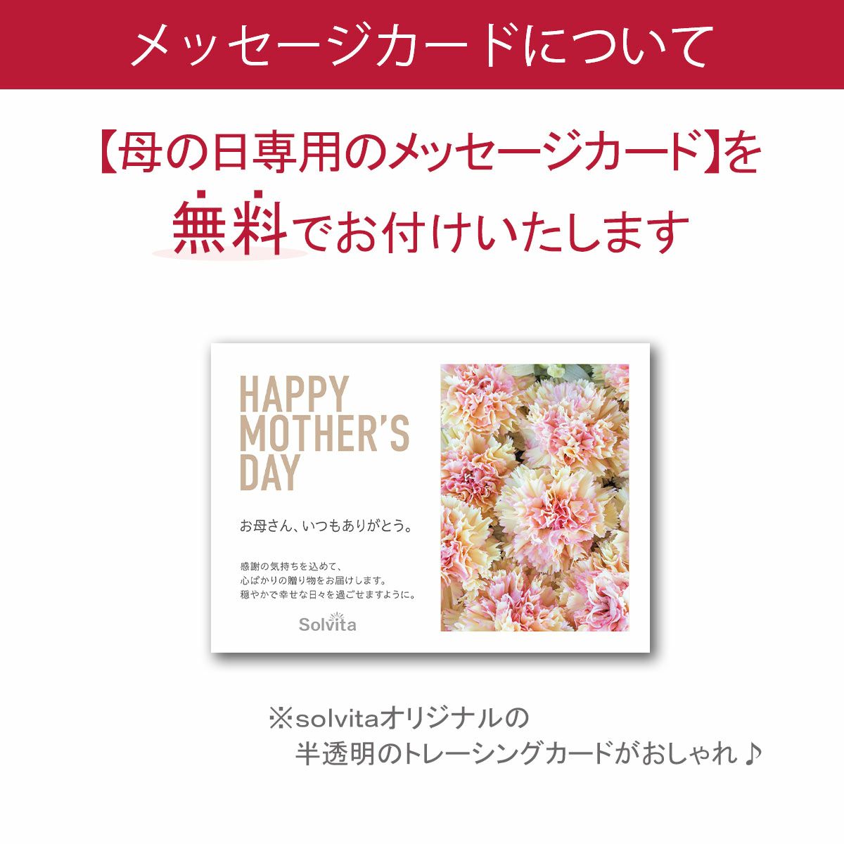母の日メッセージカード付 フラワードームアレンジメント ハート/レッド+ソーラー