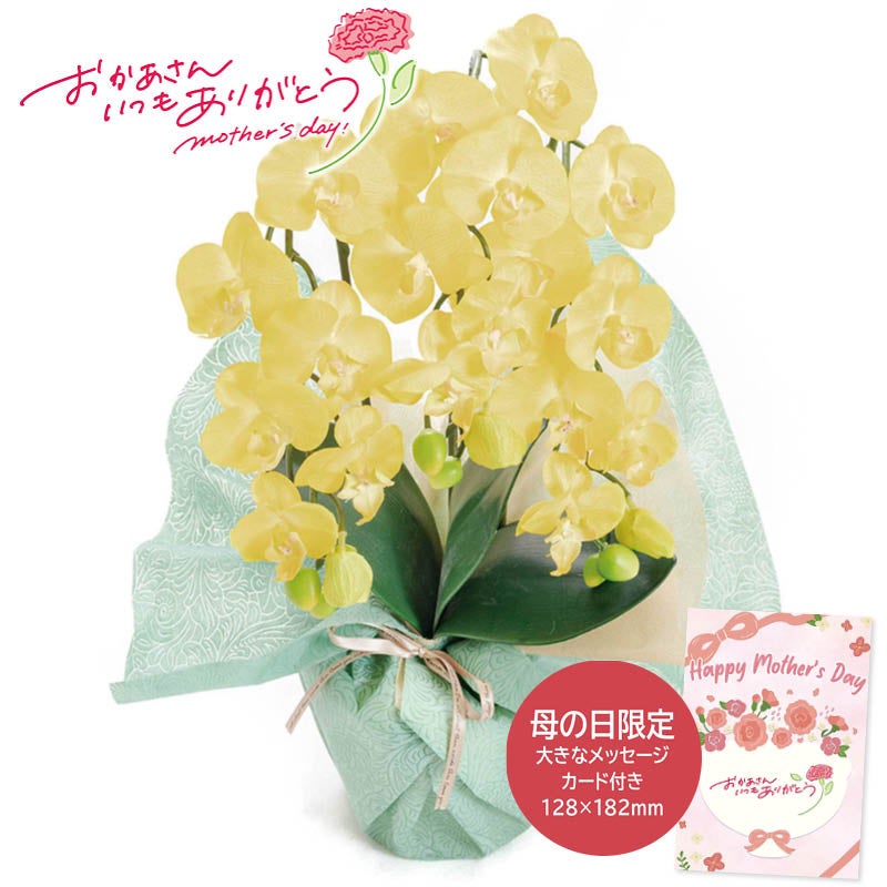母の日 ギフト 2026 母の日 アーティフィシャルフラワー ミニ胡蝶蘭3本立ち イエロー